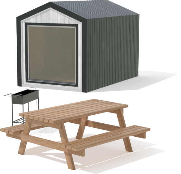 В доме находится двуспальная кровать, холодильник с мини-баром и розетки. И все принадлежности для барбекю.